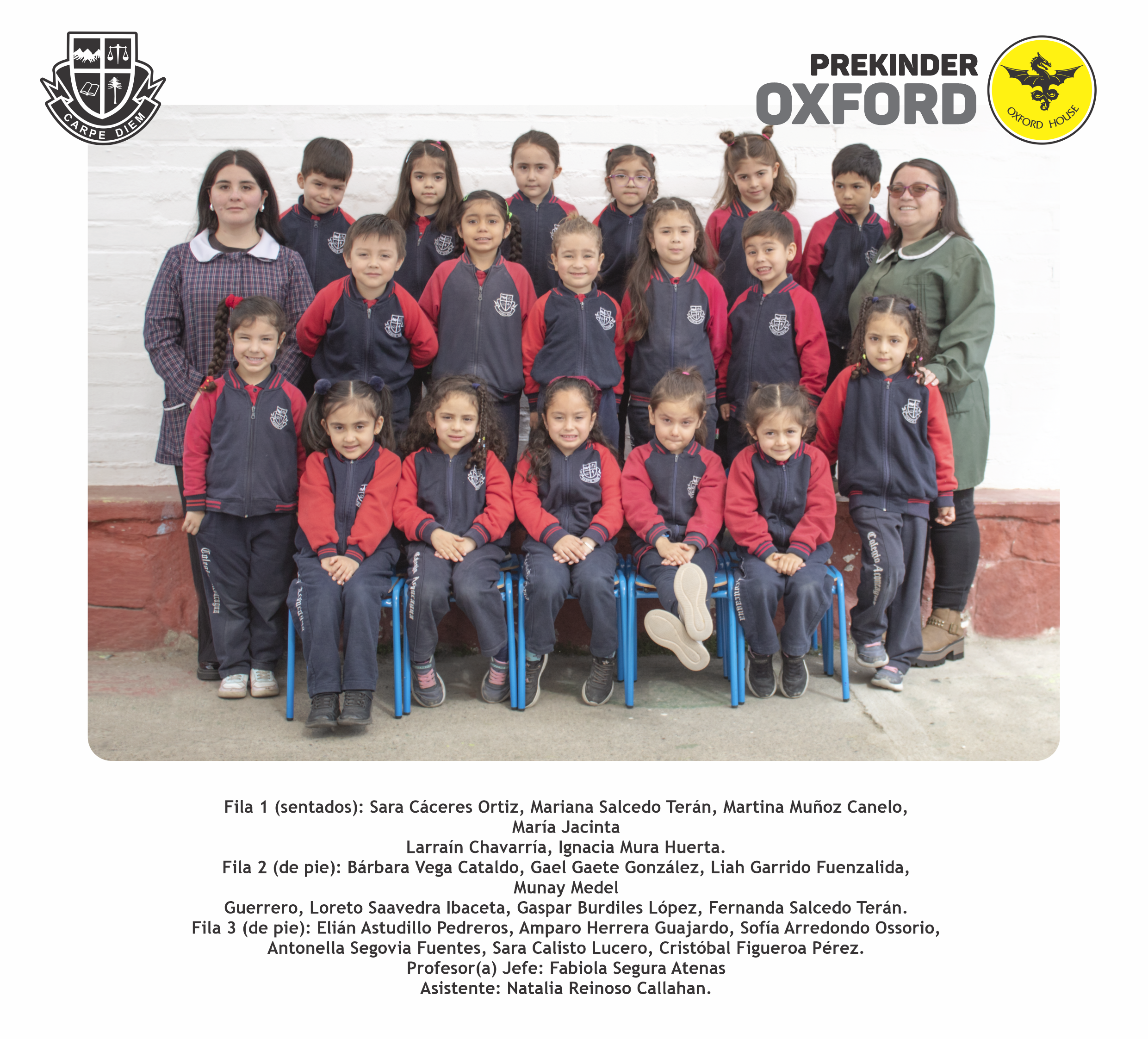 Fila 3 (de pie): Elián Astudillo Pedreros, Amparo Herrera Guajardo, Sofía Arredondo Ossorio, Antonella Segovia Fuentes, Sara Calisto Lucero, Cristóbal Figueroa Pérez.